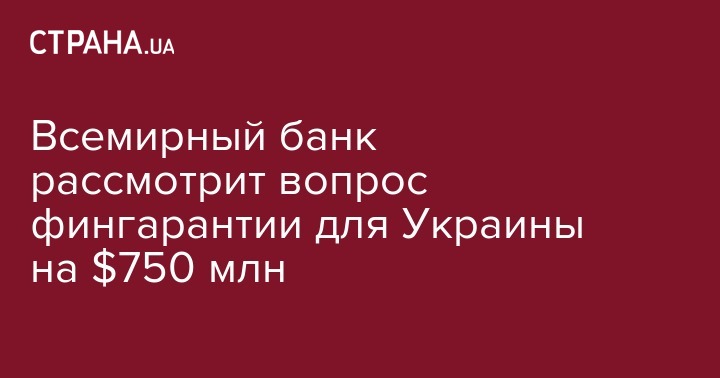 Всемирный банк рассмотрит вопрос фингарантии для Украины на $750 млн
