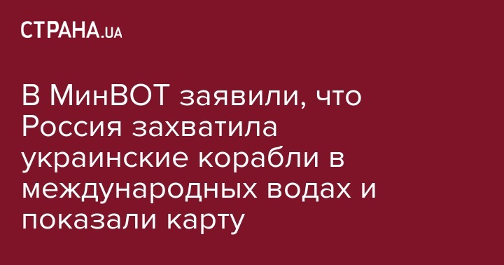 Также МинВОТ публикует карту, которая составлена на основе координат нахождения украинских военных кораблей "Бердянск", "Никополь" и "Яну Капу" в момент обстрела и задержания их военными подразделениями РФ.