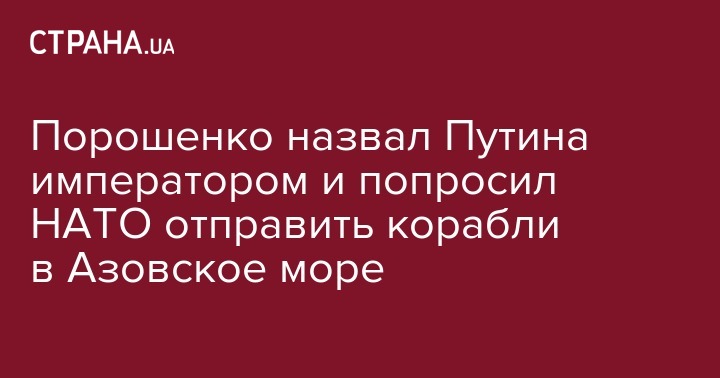 Президент Украины Петр Порошенко призвал страны НАТО направить военные корабли в Азовское море в связи с российской агрессией. Об этом он заявил в интервью немецкому изданию Bild. "Германия - один из ближайших союзников, и мы надеемся, что государства НАТО готовы направить корабли к Азовскому морю, чтобы поддержать Украину и усилить безопасность", - отметил Порошенко.