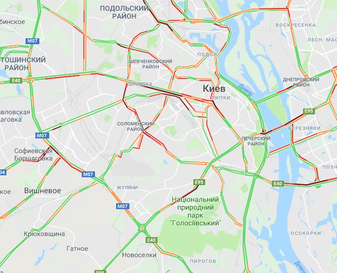 Как свидетельствует Google Maps, тянучки есть в каждом из районов города. Наибольшие проблемы наблюдаются в центре Киева, на улице Короленковской, на проспекте Валерия Лобановского, на улице Жилянской, на улице Вузовской, на улице Николая Трублаини, на Большой Окружной дороге, на улице Соборной, на проспекте Победы, на улице Семена Скляренко и на проспекте Степана Бандеры.