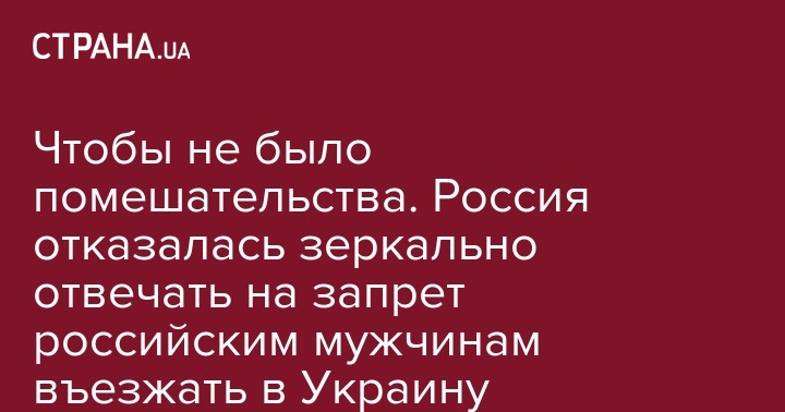 Россия не планирует зеркальный ответ на ограничение со стороны Украины на въезд в страну граждан Российской Федерации мужского пола в возрасте от 16 до 60 лет. Об этом заявила официальный представитель МИД РФ Мария Захарова, передает "Интерфакс".