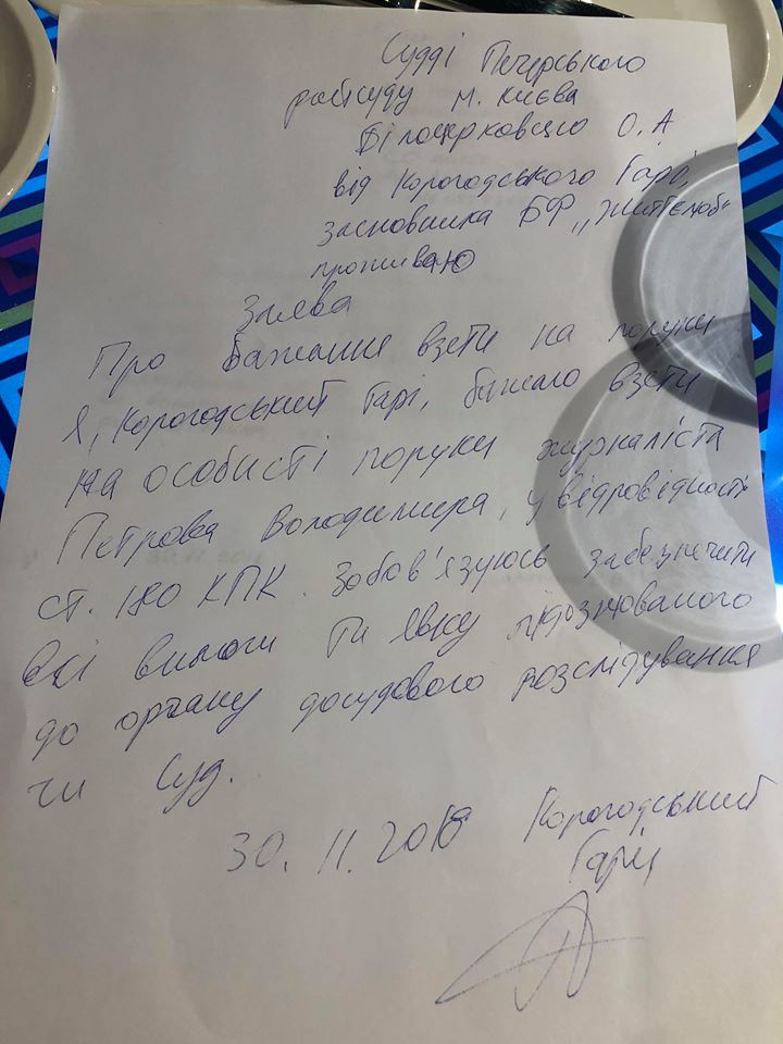 В Сети опубликовали и соответсвующее заявление Корогородского.