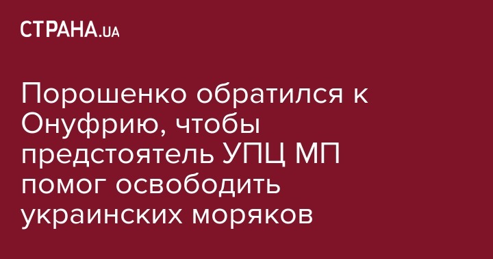 Президент Украины Петр Порошенко обратился к предстоятелю УПЦ МП Онуфрию, чтобы тот помог возвращению на Родину украинских моряков, которые были захвачены РФ в Керченском проливе 25 ноября. Об этом сообщает пресс-служба главы государства.