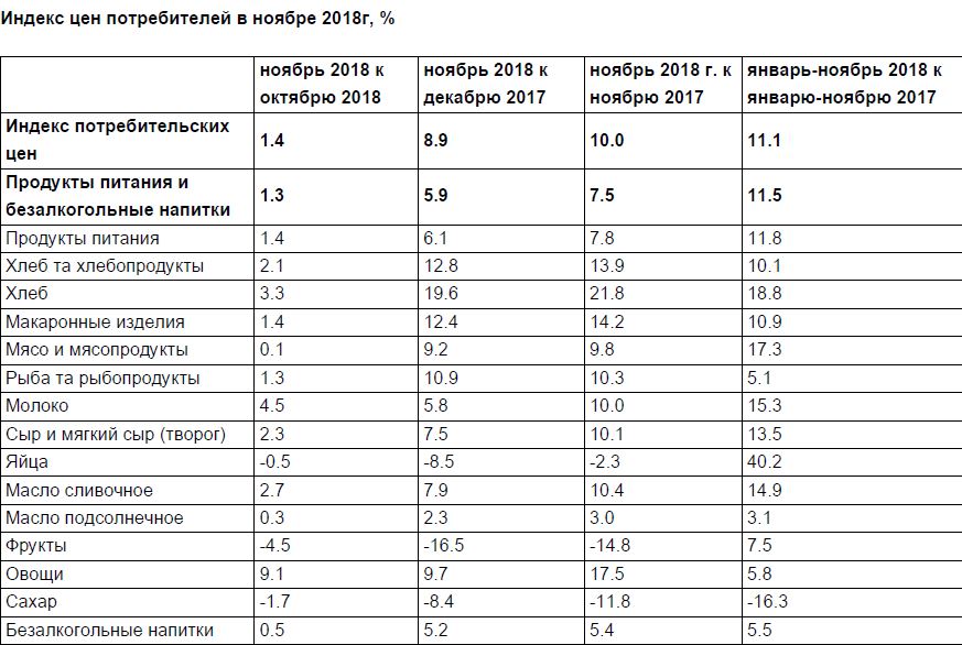 В то же время, рост потребительских цен в Украине в ноябре 2018 года замедлился до 1,4% с 1,7% в октябре и 1,9% – в ноябре и с начала года достиг 8,9%. Базовая инфляция в ноябре-2018 также снизилась до 1,1% с 1,3% в октябре и 1,9% в сентябре, по итогам 11 месяцев достигла 8,1%.