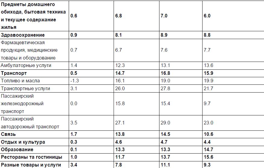 Рост цен (тарифов) на 6,1% на жилье, воду, электроэнергию, газ и другие виды топлива произошел главным образом за счет повышения тарифов на природный газ на 22,9%, а также тарифов на канализацию - на 2,5%, горячую воду и отопление - на 2,3%, водоснабжение - на 2,1%.