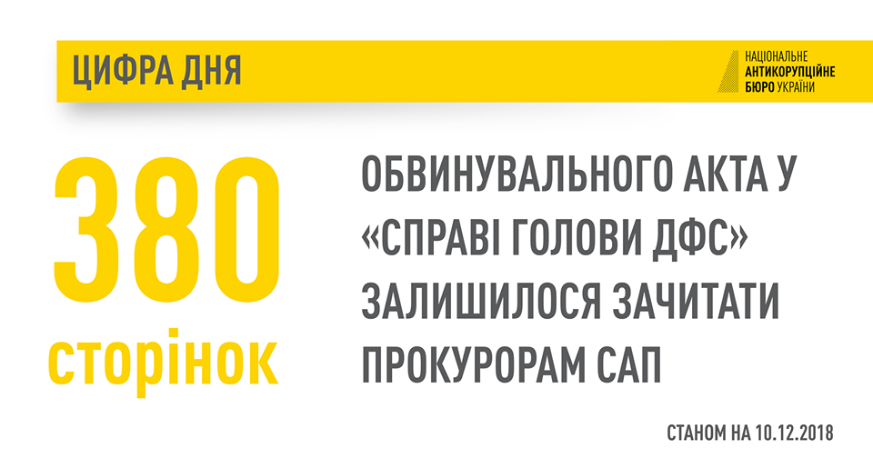 "Таким образом, этот год завершается на 394 странице (обвинительного акта - Прим.Ред.): до конца осталось зачитать еще 380. Надеемся, этот процесс наконец завершится в следующем году, и суд сможет начать изучение доказательной баз", - сказано в сообщении НАБУ.