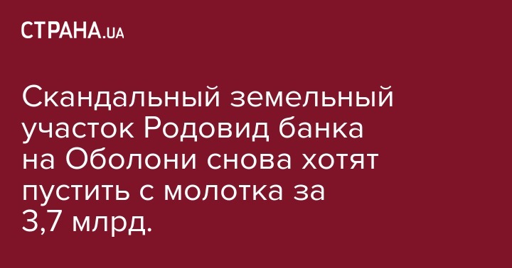 Земля в Оболонском районе Киева, которая принадлежит АТ "Родовид банку", выставлена на торги за 3,7 млрд гривен. Об этом сказано в объявлении в системе ProZorro.