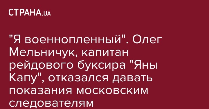 Капитан рейдового буксира "Яны Капу" Олег Мельничук, который был захвачен в Керченском проливе 25 ноября, российскими пограничниками, отказался давать показания следователям и заявил, что является военнопленным.