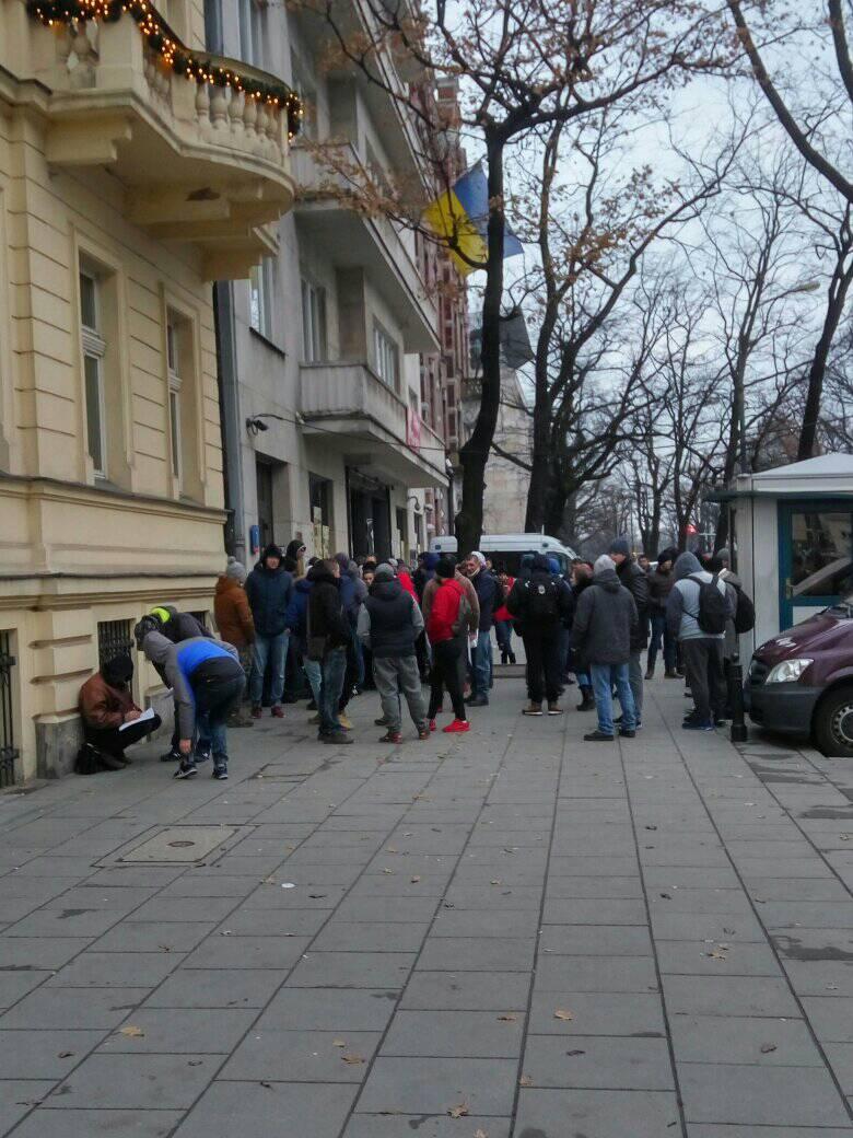 У консульского отдела посольства Украины в Варшаве с ночи собираются евробляхеры. Источник фото: Facebook