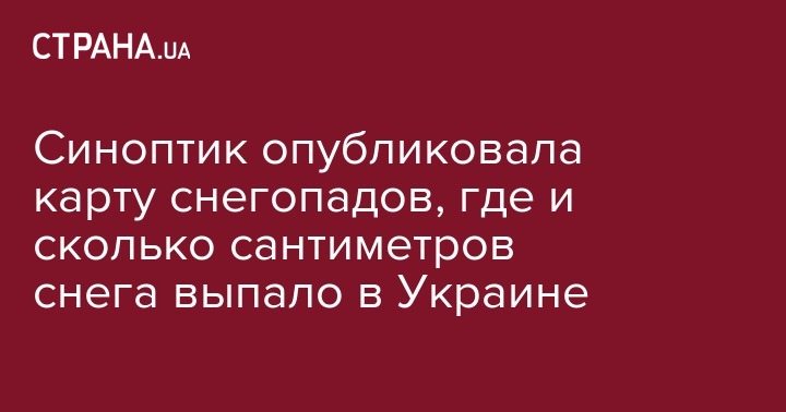 Синоптик опубликовала карту снегопадов, где и сколько сантиметров снега выпало в Украине