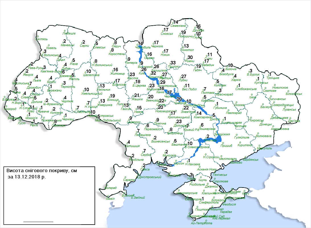 Снегопады накрыли также Днепропетровскую, Запорожскую и Полтавскую области, правда не так обильно. Средний снежный покров земли составляет 20-25 см.