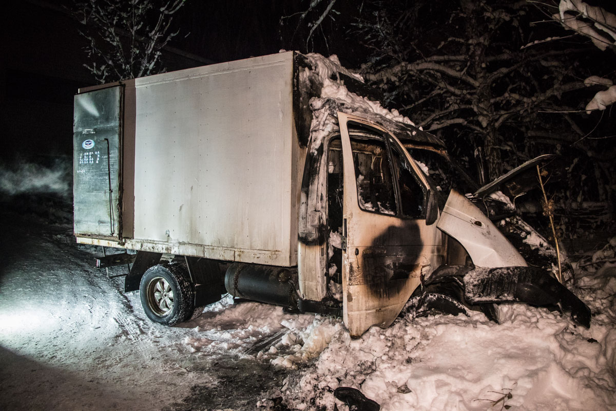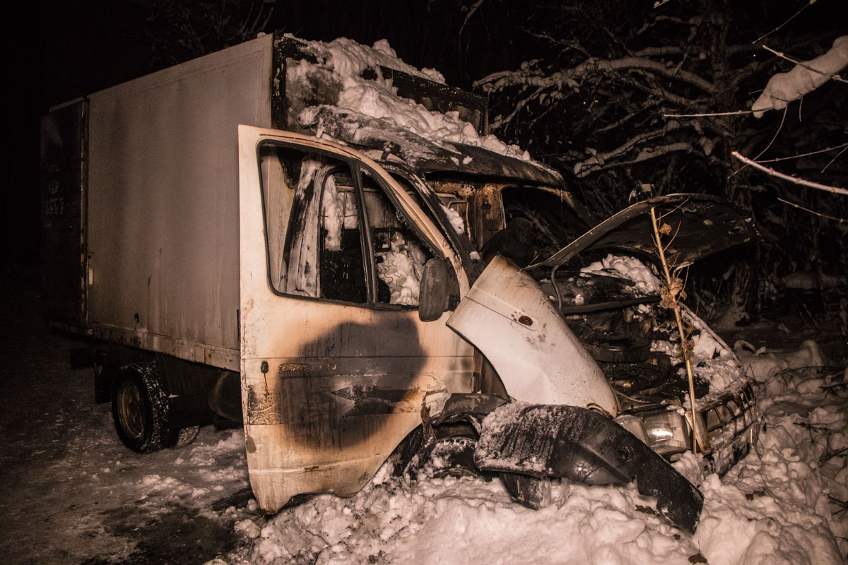 Водитель заживо сгорел в авто. Его личность и возраст пока что не установлены. ГАЗель оказалась на житомирских номерах.
