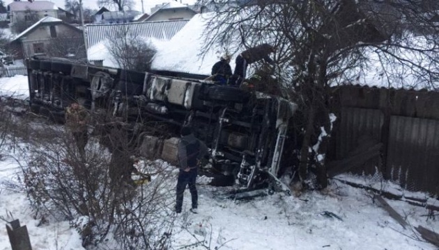 Под Тернополем фура с турецкими номерами вылетела с дороги и едва не снесла дом