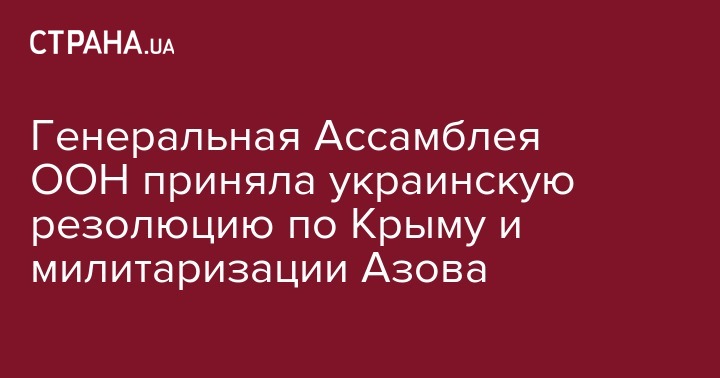 Генеральная Ассамблея ООН приняла украинскую резолюцию по Крыму и милитаризации Азова
