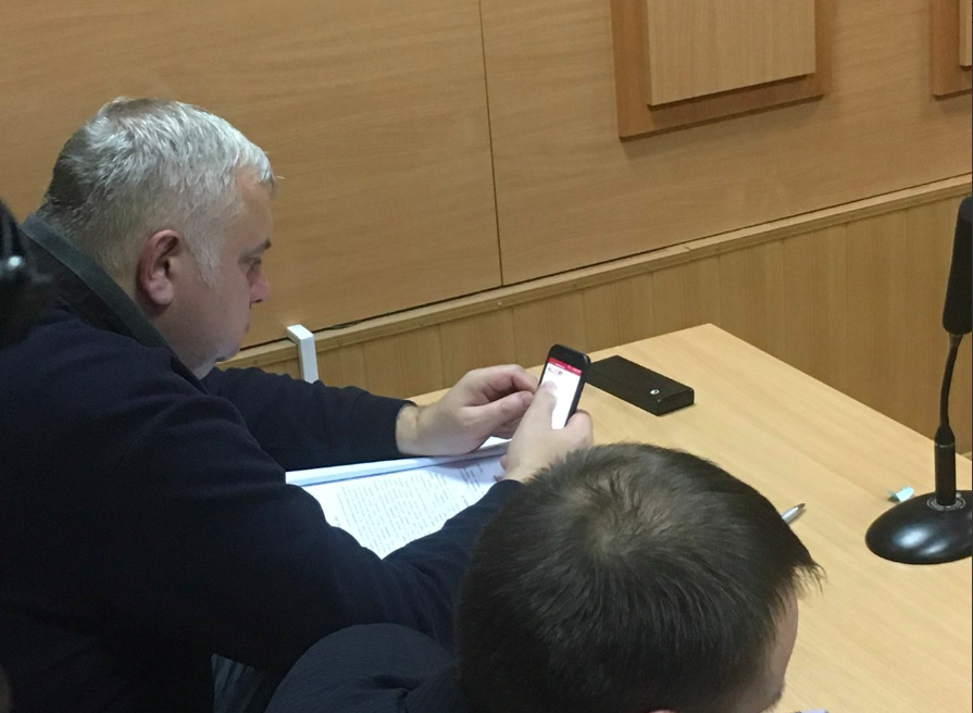 Прокурор Грицай читает новость на "Стране", посвященную продолжающемуся судебному заседанию