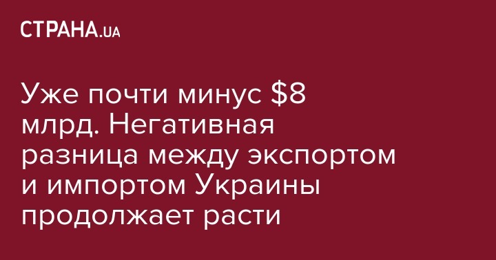Уже почти минус $8 млрд. Негативная разница между экспортом и импортом Украины продолжает расти