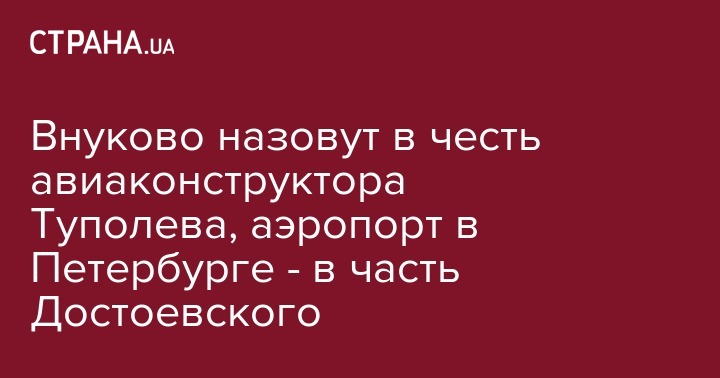 Внуково назовут в честь авиаконструктора Туполева, аэропорт в Петербурге - в часть Достоевского