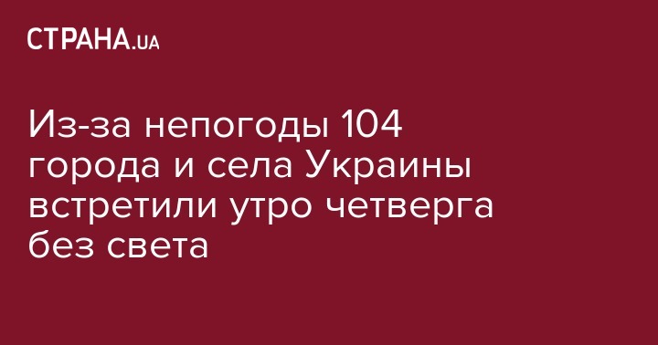 Из-за непогоды 104 города и села Украины встретили утро четверга без света