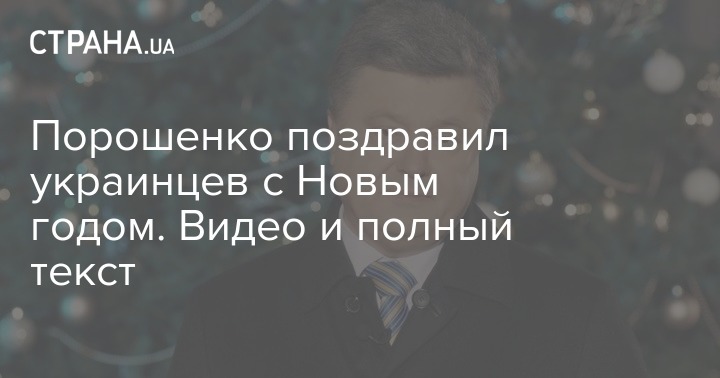 Президент Украины Петр Порошенко 31 декабря поздравил украинцев с наступлением 2019 года. Видеообращение опубликовано на сайте главы государства. Его показали по всем крупным телеканалам страны.