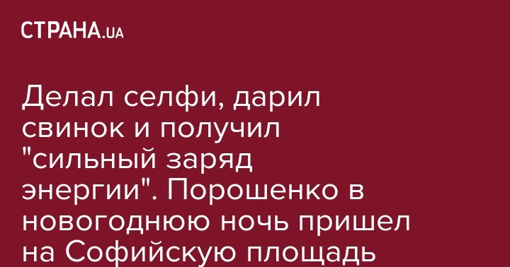 Делал селфи, дарил свинок и получил "сильный заряд энергии". Порошенко в новогоднюю ночь пришел на Софийскую площадь