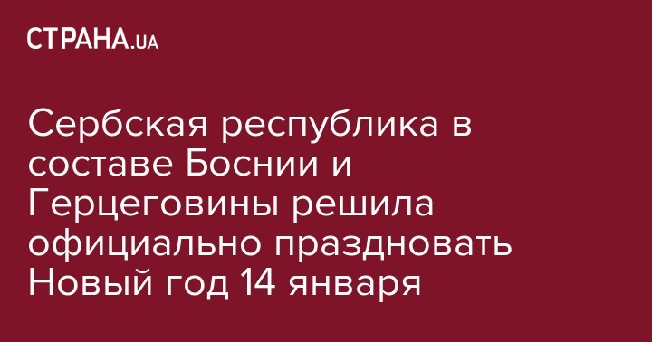 Сербская Республика в составе Боснии и Герцеговины приняла решение назначить 14 января выходным в автономии и праздновать в этот день Новый год. Об этом сообщает Nezavisne Novine со ссылкой на правительство автономии.