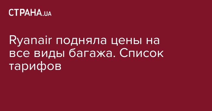Авиакомпания-лоукостер Ryanair изменила тарифы на оплату услуги приоритетной посадки (Priority) и провоза малого (до 10 кг) регистрируемого багажа (ручной клади). Об этом сообщает Lowcostavia.
