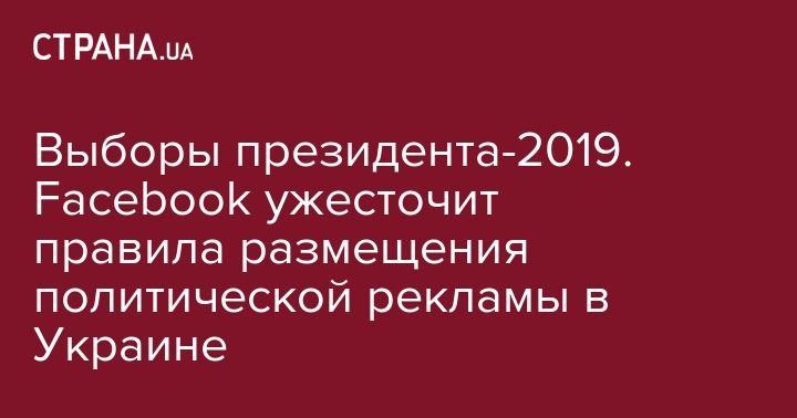 Такая политика вступит в силу в Украине в феврале, поскольку выборы президента состоятся 31 марта. Ужесточение также коснется стран ЕС, Индии и Нигерии. В платформе считают, что Facebook с 2016 года стал для политиков и их противников средством распространения фальшивых новостей и другой пропаганды.