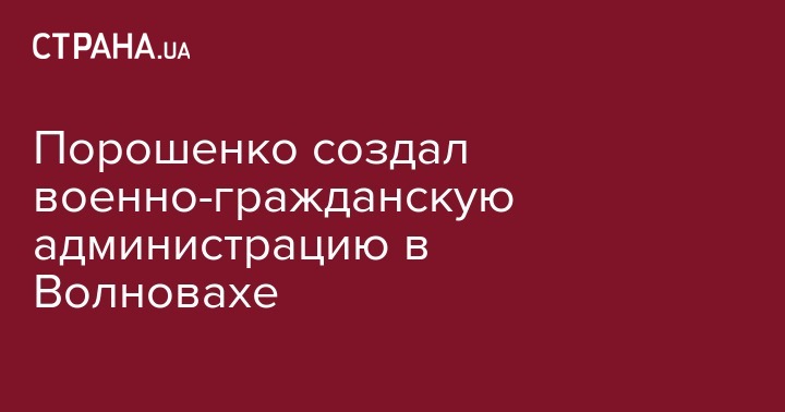 Президент Петр Порошенко распорядился создать военно-гражданскую администрацию (ВГА) города Волноваха Волновахского района Донецкой области. Об этом говорится в указе №12/2019, подписанном 17 января.