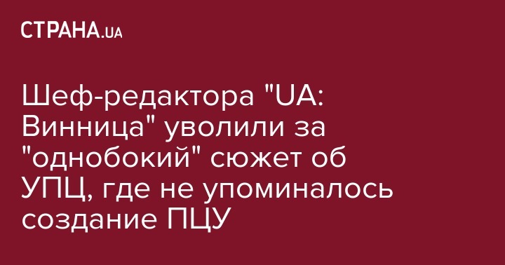 В декабря не региональном канале "UA: Винница" вышел сюжет про назначение главой Винницкой и Барской епархии архиепископа УПЦ Варсонофия. Уже в январе 2019 года автору материала был вынесен выговор, а шеф-редактор новостей был уволен по согласованию сторон - якобы из-за несоблюдения журналистских стандартов. Об этом сообщает "Детектор медиа"
