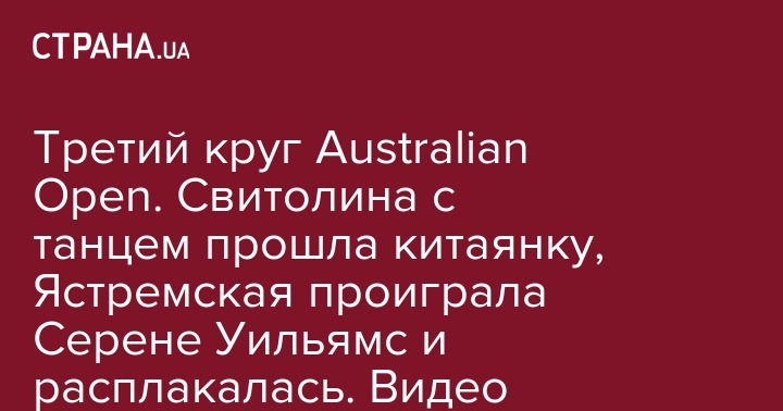 В ночь на 19 января сразу две украинки играли в третьем круге Australian Open. Третья ракетка Украины Даяна Ястремская встретилась с 16 ракеткой мира Сереной Уильямс, а Элина Свитолина – с Чжан Шуай из Китая.