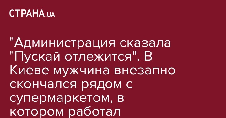 Журналист dtp.kiev.ua Влад Антонов также прокомментировал произошедшее. Он поражен реакцией руководства супермаркета, где работал умерший сотрудник. "Пусть лежит", - приблизительно так ответили администраторы ритейла, узнав о найденном трупе. "Администрация решила не помогать. "Пускай отлежится", - недоумевает Владислав Антонов.