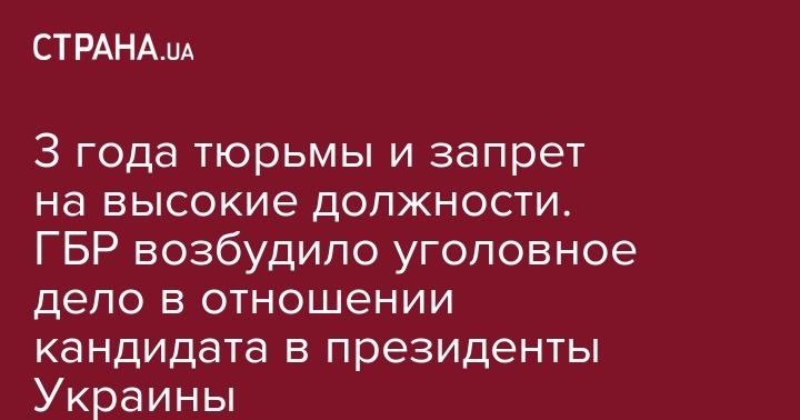 3 года тюрьмы и запрет на высокие должности. ГБР возбудило уголовное дело в отношении кандидата в президенты Украины