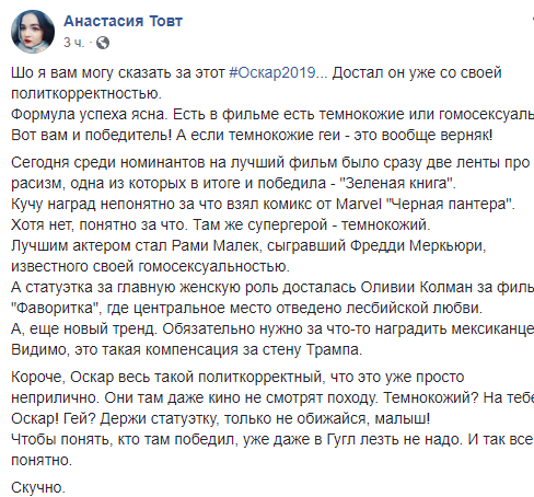 "Шо я вам могу сказать за этот Оскар2019... Достал он уже со своей политкорректностью.