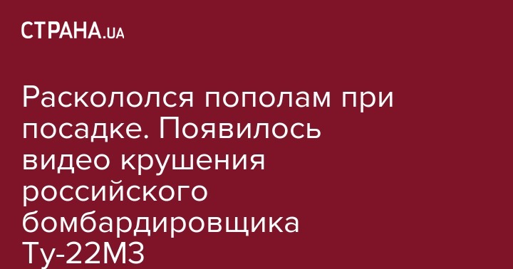 Очевидцы сняли крушение при посадке российского бомбардировщика Ту-22М3 на аэродроме в Мурманской области. Во время приземления самолет просто раскололся на две части. Об этом свидетельствует видеозапись свидетеля крушения, опубликованная Aeronews в Facebook.