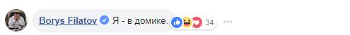 Впрочем, в комментарии в посту Корбана через некоторе время написал сам Филатов, который, надо полагать, "нашелся". "Я - в домике", - написал он.