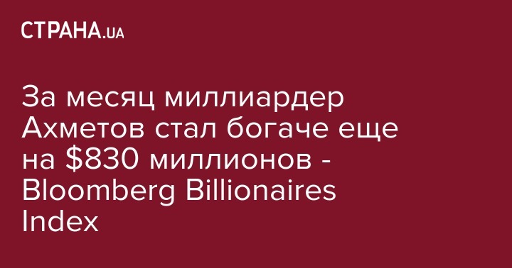 За месяц миллиардер Ахметов стал богаче еще на $830 миллионов - Вloomberg Billionaires Index