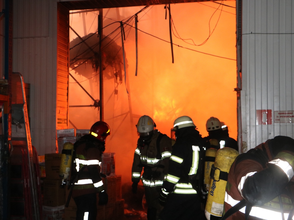 Как сообщала "Страна", пожар на складах возле "Дарынка" превысил площадь футбольного поля.  Сложность ликвидации пожара заключалась в отсутствии на территории объекта наружного противопожарного водоснабжения, поэтому спасателям приходится проводить магистральные линии с дальней дистанции.