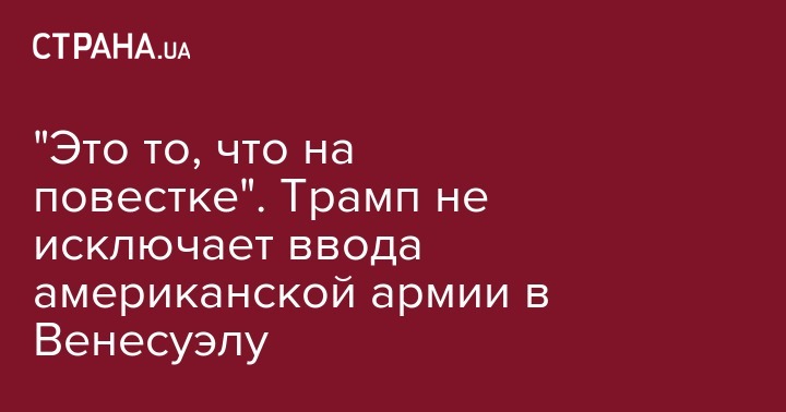 Президент США Дональд Трамп заявил, что не исключает введения американских военных в Венесуэлу. Об этом он рассказал в интервью CBS, передают "Украинские новости".