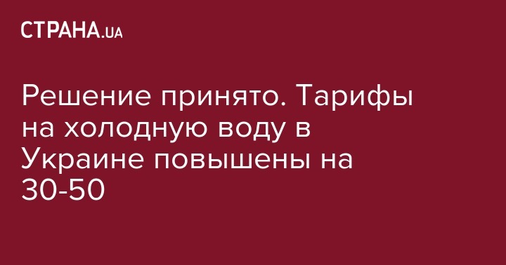 Решение принято. Тарифы на холодную воду в Украине повышены на 30-50%