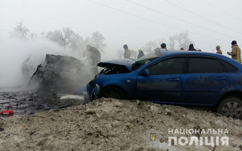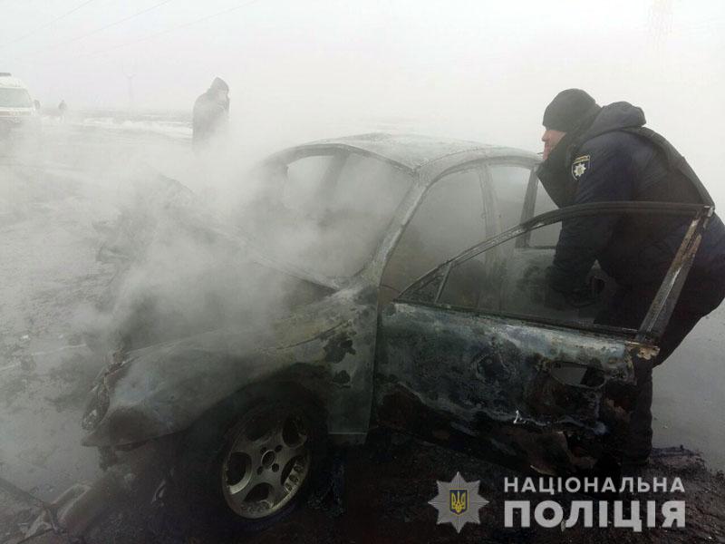 Во вторник утром, 5 января, в Марьинском районе Донецкой области на трассе Донецк-Запорожье водитель автомобиля "Шевроле", совершая обгон, не справился с управлением и врезался в "Дэу Ланос". От удара автомобиль загорелся.
