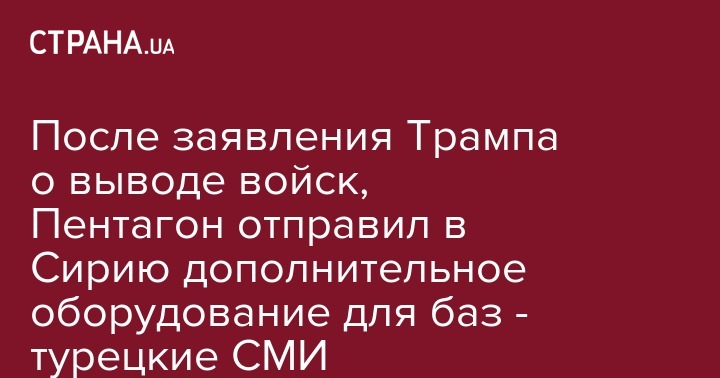 После заявления Трампа о выводе войск, Пентагон отправил в Сирию дополнительное оборудование для баз - турецкие СМИ