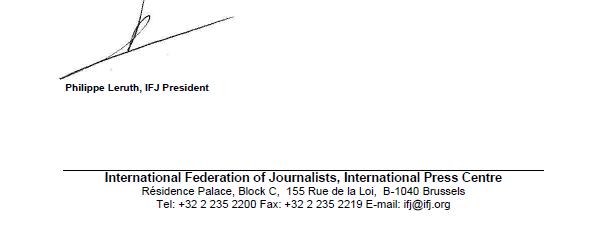 Также президент Международной федерации журналистов отмечает, что новоизбранный президент Украины должен взять обязательства публиковать ежегодный отчет о результатах расследования преступлений против журналистов с детализацией усилий органов власти, направленных на преодоление безнаказанности в отношении этих преступлений.