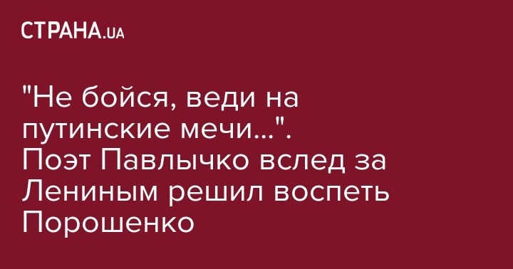 "Не бойся, веди на путинские мечи...". Поэт Павлычко вслед за Лениным решил воспеть Порошенко