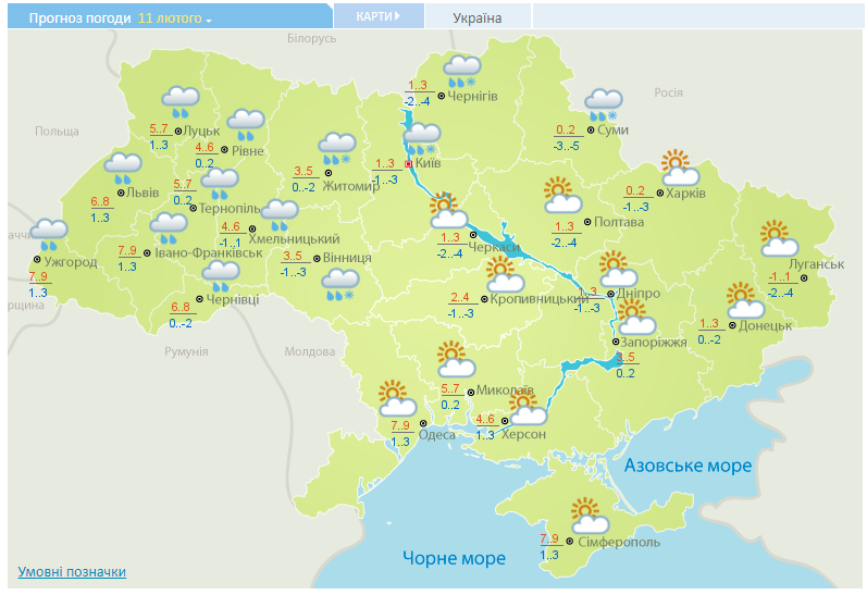 В понедельник, 11 февраля, в Украине будет тепло, но местами в регионах пройдут дожди. Об этом сообщает Укргидрометцентр.
