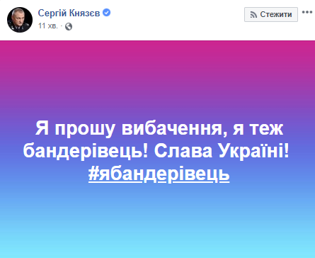 Сам глава Национальной полиции Сергей Князев тоже извинился за "бандеровца" в своем Facebook.