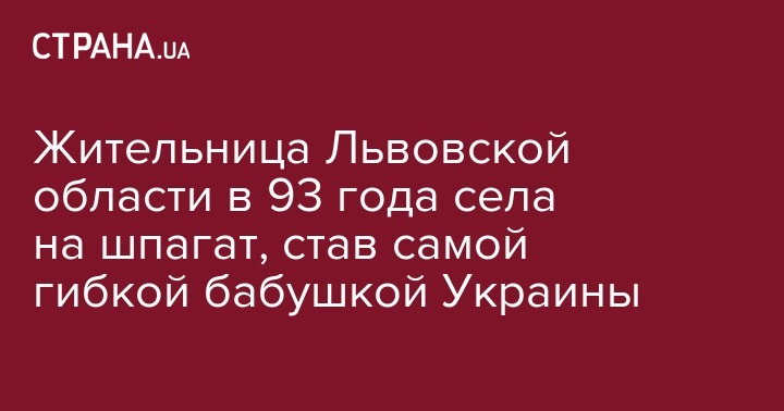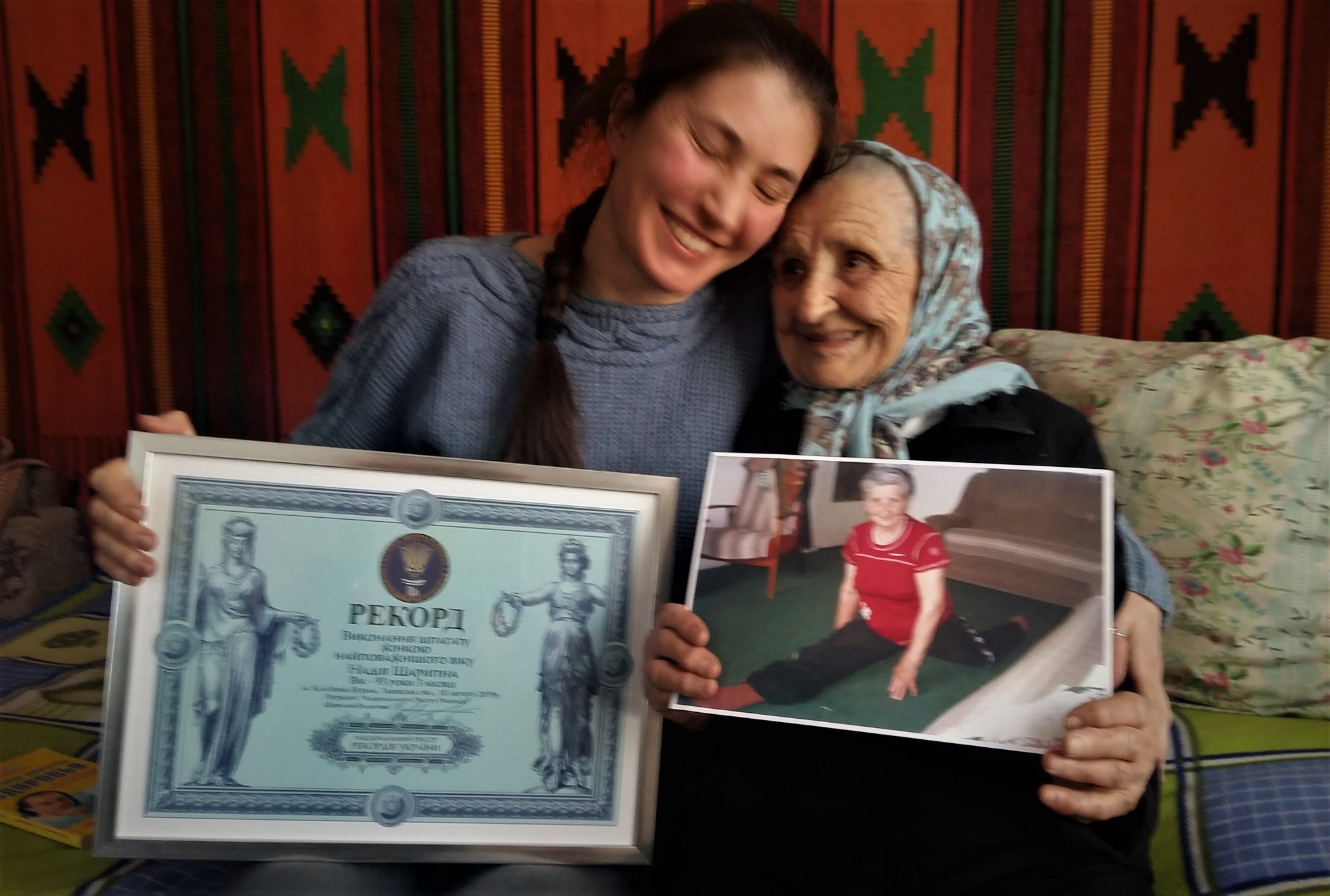 Во вторник, 12 февраля, 93-летняя Надежда Шарыгина из города Каменка-Бугская во Львовской области установила новый рекорд, официально став самой гибкой бабушкой Украины. Информация об этом опубликована на странице Национального реестра рекордов в соцсети Facebook.
