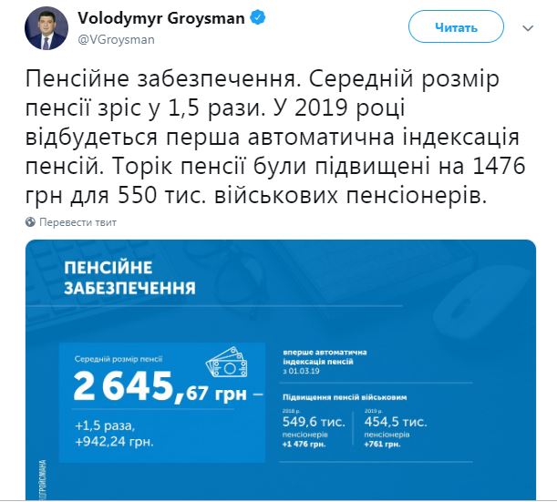 Гройсман анонсировал автоматическую индексацию пенсий с 1 марта