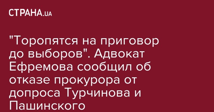 "Торопятся на приговор до выборов". Адвокат Ефремова сообщил об отказе прокурора от допроса Турчинова и Пашинского