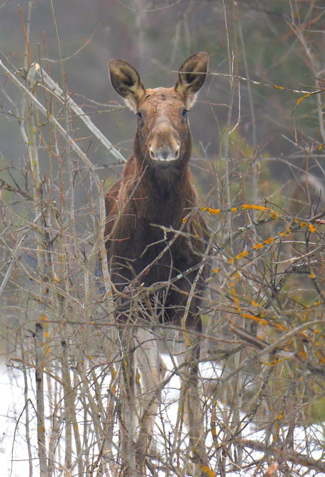 В сети появилось свежее фото лося, который выглядывает из лесу сквозь поросль сушняка в зоне отчуждения Чернобыльской АЭС. Снимки выложило Госагентство Украины по управлению зоной отчуждения на своей странице в Facebook.