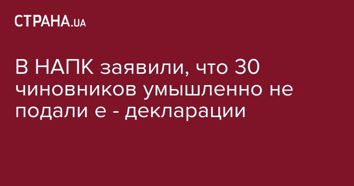 В НАПК заявили, что 30 чиновников умышленно не подали е - декларации